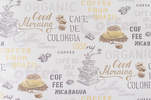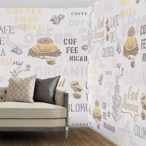 Обои коллекции ''Кофе'' интересны и графичны. Текстура обоев сродни холсту мешковины для кофейных зерен. Необычное стилистическое оформление коллекции придаст интерьеру уникальности.