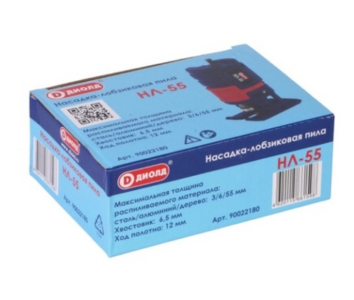 Насадка-лобзиковая пила НЛ-55 является приспособлением для аккумуляторных и электрических дрелей и шуруповертов, предназначенным для сквозного резания твердой и мягкой древесины, фанеры, металла, изоляционных материалов, вспененного полистирола, кожи, ковровых покрытий и прочих мягких материа-лов в бытовых условиях.