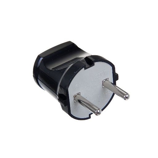 Вилка без заземления, черная 6А 250В UNIVersal A0113 изготовлена из прочного и надежного пластика, который не боится механического воздействия и не поддерживает горение. Изделие используется для мобильного подсоединения бытового электрооборудования к стационарной розетке.