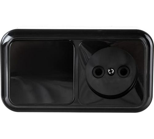 Горизонтальный блок: одноклавишный выключатель + розетка без заземлением, черный используется для установки и эксплуатации в бытовых помещениях. Изделие предназначено для горизонтального монтажа.