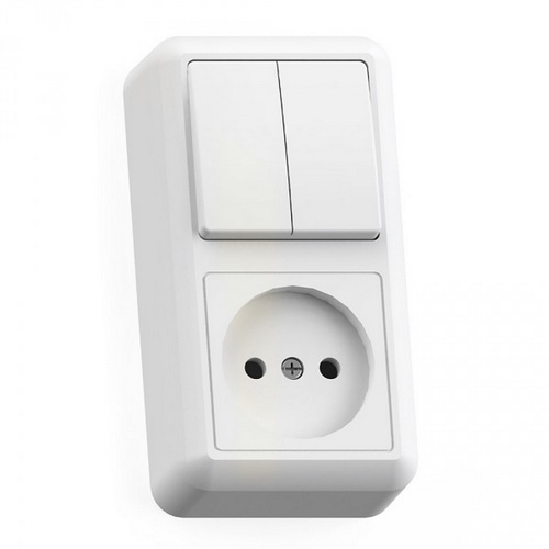 Выключатель 2 клавишный+розетка