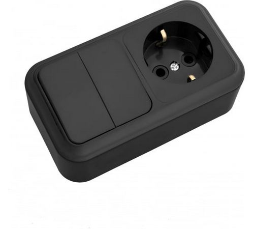 Горизонтальный блок: одноклавишный выключатель + розетка без заземлением, черный используется для установки и эксплуатации в бытовых помещениях. Изделие предназначено для горизонтального монтажа.