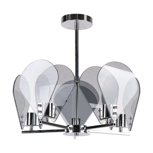 Потолочный светильник 10237/5CR SM от бренда ЭкономСвет. Каркас выполнен из материала металл, цвет хром. Плафоны (светорассеиватели) выполнены из материала стекло, цвет дымчатый. Цоколь E27 рассчитан на лампы максимальной мощности до 60 Вт, а максимальная площадь освещения составит до 11 м².