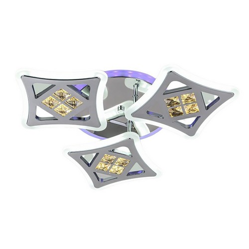 Люстра светодиодная 50556/3CR RGB в современном стиле с пультом дистанционного управления от бренда ЭкономСвет. Каркас выполнен из материалов акрил и металл; цвета: хром и белый. Плафоны (светорассеиватели) выполнены из материалов акрил, металл и стекло; цвета: хром, белый и прозрачный. Встроенные LED модули на 65 Вт осветят до 17 м². Есть регулировка цветовой температуры и яркости. Светодиодная подсветка позволит создать в интерьере разнообразное световое настроение.