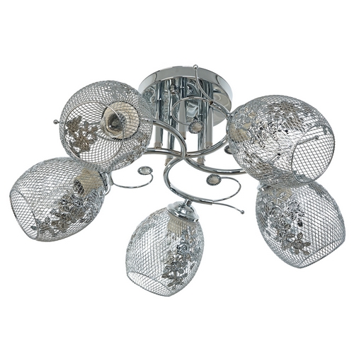 Потолочный светильник 51155/5CR CR от бренда ЭкономСвет. Каркас выполнен из материала металл, цвет хром. Плафоны (светорассеиватели) выполнены из материала металл, цвет хром. Цоколь E27 рассчитан на лампы максимальной мощности до 40 Вт, а максимальная площадь освещения составит до 11 м².