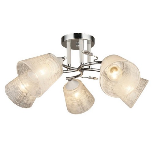 Люстра эконом 12215/5CR+WT WCL от бренда ЭкономСвет. Каркас выполнен из материала металл, цвет хром, белый. Плафоны (светорассеиватели) выполнены из материала стекло, цвет белый полупрозрачный. Цоколь E27 рассчитан на лампы максимальной мощности до 60 Вт, а максимальная площадь освещения составит до 11 м².