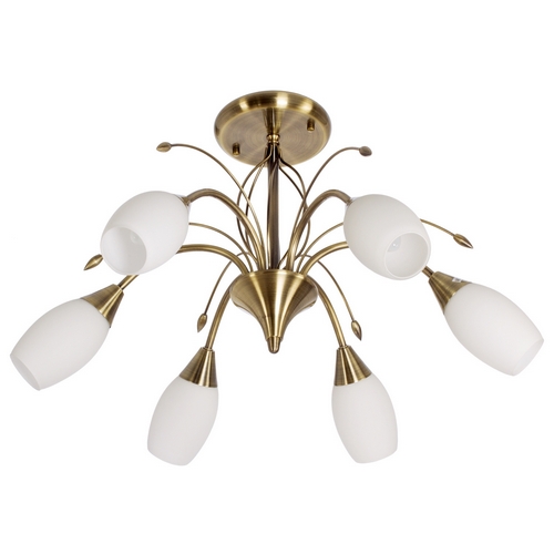 Потолочный светильник 12121/6AB MK от бренда ЭкономСвет. Каркас выполнен из материала металл, цвет античная бронза. Плафоны (светорассеиватели) выполнены из материала стекло, цвет белый. Цоколь E14 рассчитан на лампы максимальной мощности до 40 Вт, а максимальная площадь освещения составит до 13 м².