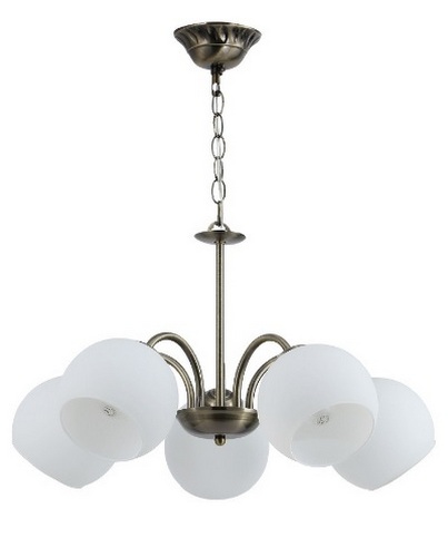 Люстра классическая 13132/5AB WT от бренда ЭкономСвет. Каркас выполнен из материала металл, цвет античная бронза. Плафоны (светорассеиватели) выполнены из материала стекло, цвет белый. Цоколь E27 рассчитан на лампы максимальной мощности до 40 Вт, а максимальная площадь освещения составит до 11 м².