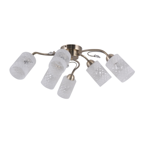 Потолочный светильник 68700/6AB CL от бренда ЭкономСвет. Каркас выполнен из материала металл, цвет античная бронза. Плафоны (светорассеиватели) выполнены из материала стекло, цвет прозрачный с матовой вставкой. Цоколь E14 рассчитан на лампы максимальной мощности до 40 Вт, а максимальная площадь освещения составит до 13 м².