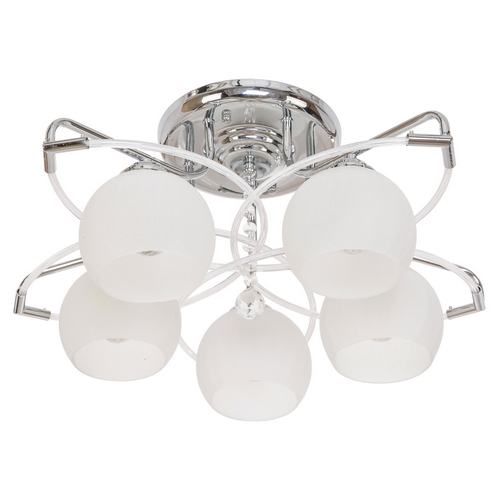 Потолочный светильник 1458/5CR WT от бренда ЭкономСвет. Каркас выполнен из материала металл, цвет хром. Плафоны (светорассеиватели) выполнены из материала стекло, цвет белый. Цоколь E27 рассчитан на лампы максимальной мощности до 60 Вт, а максимальная площадь освещения составит до 11 м².