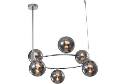 Подвесной светильник Rivoli Pauline (арт. 3104-306) это эффектная люстра с 6 круглыми дымчатыми плафонами и хромированной арматурой.