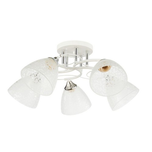 Потолочный светильник 13207/5WT CR CL_2 от бренда ЭкономСвет. Каркас выполнен из материала металл, цвет белый, хром. Плафоны (светорассеиватели) выполнены из материала стекло, цвет прозрачный. Цоколь E27 рассчитан на лампы максимальной мощности до 40 Вт, а максимальная площадь освещения составит до 11 м².
