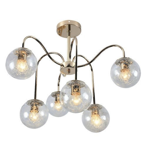 Люстра в стиле модерн 20108/6FGD CL от бренда ЭкономСвет. Каркас выполнен из материала металл, цвет золото. Плафоны (светорассеиватели) выполнены из материала стекло, цвет прозрачный. Цоколь E27 рассчитан на лампы максимальной мощности до 60 Вт, а максимальная площадь освещения составит до 13 м².