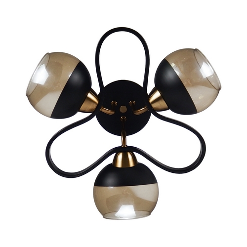 Потолочный светильник 10204/3BK+ZAB BK+AMB от бренда ЭкономСвет. Каркас выполнен из материала металл; цвета: черный и античная бронза. Плафоны (светорассеиватели) выполнены из материалов металл и стекло; цвета: янтарный и черный. Цоколь E27 рассчитан на лампы максимальной мощности до 40 Вт, а максимальная площадь освещения составит до 7 м².