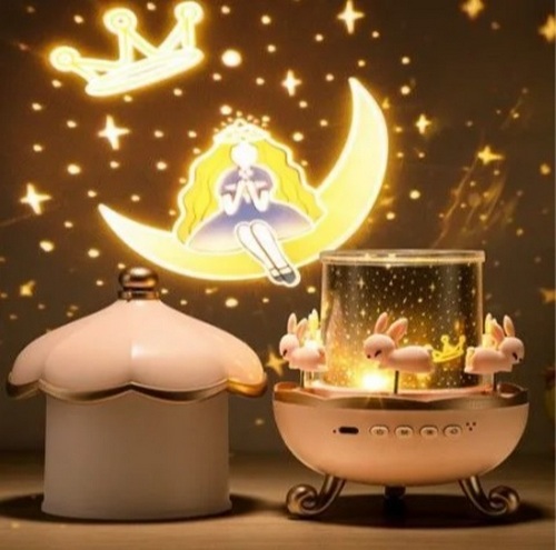 Ночник - проектор WH-E11 "Карусель" с Bluetooth, 6 сменных проекций, 3 цветовых режима+смешанный режим, с ДУ Включай.