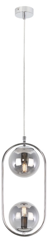Подвесной светильник Pauline от итальянского бренда Rivoli имеет 2 круглых стеклянных плафона, оригинально расположенных по направлению друг к другу сверху и снизу хромированной овальной арматуры. Эти потолочные подвесные светильники в современном исполнении применяются с лампами Е14 мощностью 40 Вт.