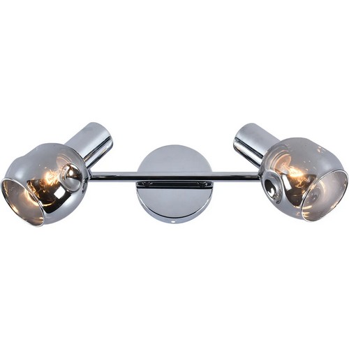 Корпус выполнен из металла с хромированным покрытием, а плафоны — из черного стекла. Такое сочетание делает модель универсальной для интерьеров в стиле модерн. Компактные размеры (440×100×190 мм) позволяют гармонично вписать светильник даже в небольшие помещения.