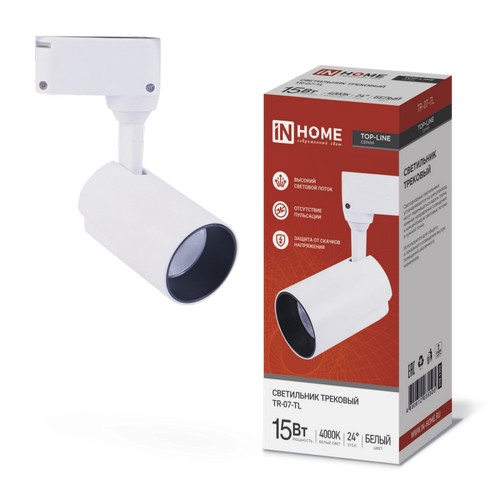 Светильник трековый светодиодный TR-07-TL 15Вт 4000К 1500Лм IP40 24 градуса белый серии TOP-LINE IN HOME - стильное световое оформление для современного интерьера. Светильник трековый позволяет создать акцентное освещение в жилых и офисных помещениях, а также в различных кофейнях и магазинах.