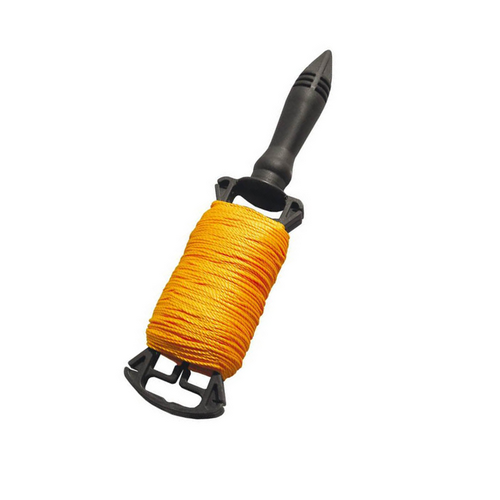 Нейлоновый шнур на катушке используется при проведении строительных работ для контроля отклонений от прямолинейности, например, при кладке стен из кирпича и пр. Шнур поставляется в комплекте с катушкой на ручке для более удобного сматывания.