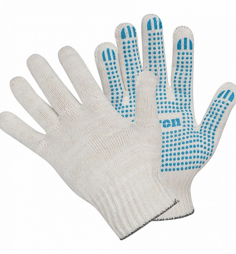 Вязаные перчатки с точечным ПВХ напылением на ладонной части являются самым распоространенным средством защиты рук при проведении строительных, садовых, сборочных и других видов работ. Плотная вязка и смешанный состав пряжи повышают износостойкость печаток и продлевают срок их службы. Точечное ПВХ покрытие обладает антискользящими свойствами, что обеспечивает хорошее сцепелние пальцев рук с предметами.