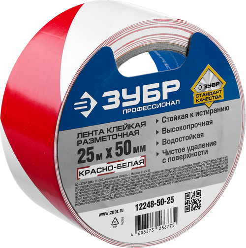 Разметочная лента изготовлена из полиэтилена высокого давления с нанесенным цветографичеким изображением. Обладает стойкостью к воздействию воды, высокой прочностью на растяжение и на разрыв. Разметочная клейкая лента ЗУБР выполняет две функции: прежде всего, это сигнальная лента для обозначения зоны опасности при проведении строительных и ремонтных работ, также он может использоваться для склеивания изделий из различных материалов.