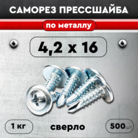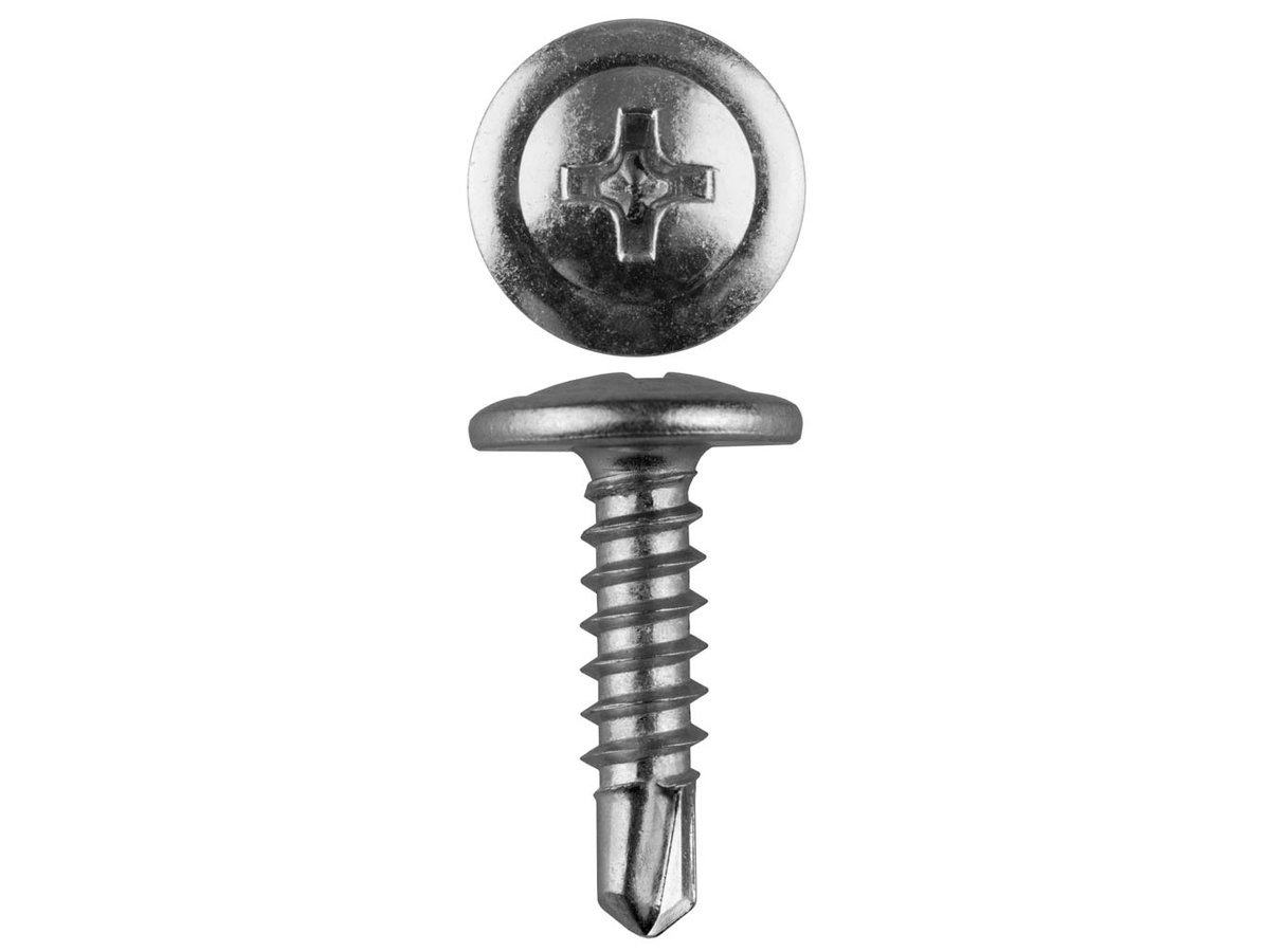 Саморез с пресс - шайбой. Головка - полукруглая с пресс – шайбой. Резьба - мелкий шаг. Наконечник – сверло. Материал - сталь С1018 - С1022. Покрытие – цинк. Саморез предназначен для монтажных работ, для крепления к металлической или пластиковой основе. Полукруглая головка с пресс - шайбой предназначена для более плотной фиксации скрепляемых материалов.