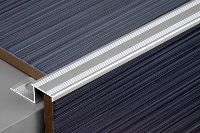 Профиль с противоскользящей поверхностью. Предназначен для отделки наружных углов поверхностей, облицованных керамической плиткой толщиной 10 ии и 12,5 мм.