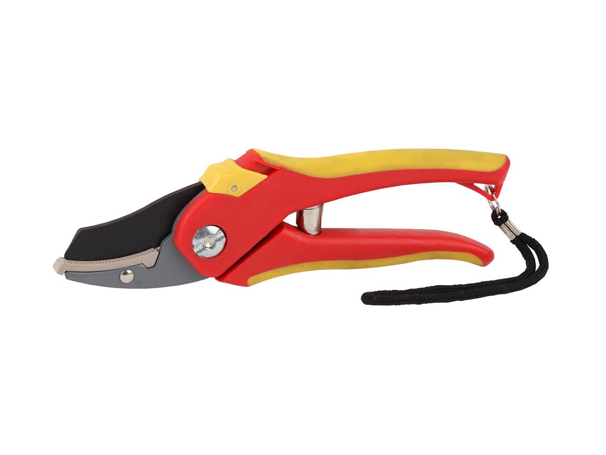 Секатор с упорной наковальней GRINDA применяется для обрезания засохших веток толщиной до 15 мм. Наковальня служит для упора, а остро заточенное лезвие выполняет чистый срез. Рукоятки из двухкомпонентного материала способствуют удобству в использовании инструмента. Для безопасного хранения предусмотрена специальная защелка. На рукоятке имеется ремешок, что позволяет повесить инструмент на крючок, либо носить на запястье.