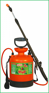 Опрыскиватель Cicle ОП-207 Жук 5 л - приспособление, используемое на садово-огородном участке или в оранжерее для полива, внесения жидких удобрений. Также может применяться для распыления чистящего средства при мытье стен, окон. Корпус опрыскивателя изготовлен из качественного пластика. Горловина бачка выполнена в виде воронки - для облегчения процесса заливки. Вместимость бака - 5 литров. Благодаря плечевым рукояткам опрыскивателем удобно пользоваться даже при обработке значительных территорий. Штанга телескопическая (ее длина регулируется от 650 до 970 мм). Рукоятка насоса выполнена из пластика. Поверхность рукоятки рельефная - для надежного захвата даже влажными руками.