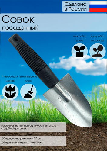 Пикировочно-посадочный совок с пластиковой ручкой – незаменимый помощник для садоводов и огородников. Используется для выкапывания посадочных ям и лунок при пересадке и пикировке различны культур. Эргономичная пластиковая ручка обеспечивает надежный хват и комфортную работу. Для удобного хранения инструмента в подвешенном виде в рукоятке предусмотрено отверстие.