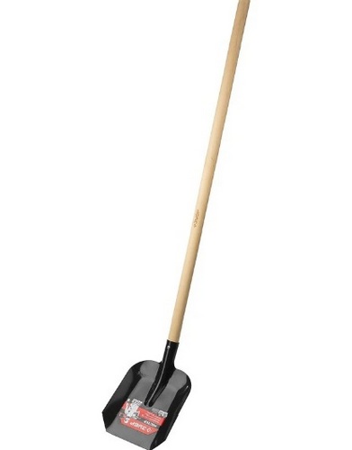 Совковая лопата оптимальна в работе с сыпучими материалами, а также для приготовления различных смесей.