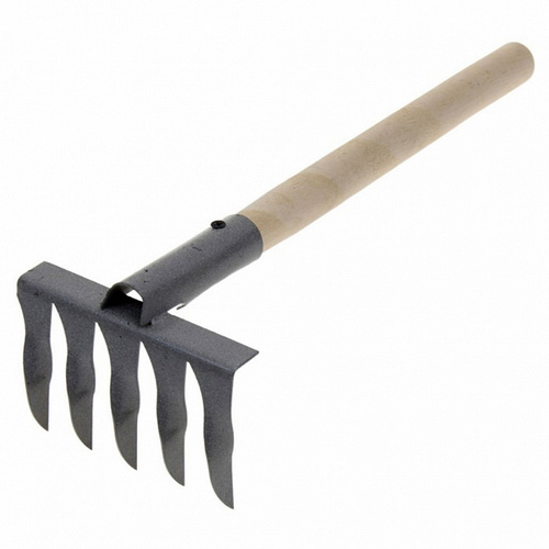 Инструмент используют для рыхления земли или выравнивания почвы на небольших грядках и клумбах