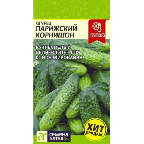 Раннеспелый урожайный сорт для открытого грунта. Плод веретеновидный, короткий, зеленый с полосами, средней длины, крупнобугорчатый, с черным опушением, длиной 5-7 см., массой 57-78 гр., вкус деликатесный, хрустящий. Отлично полходит для консервирования. Высокоустойчив к болезням.