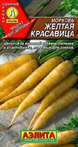 Желтая морковь ценится за высокий уровень ксантофилла и лютеина, полезных для зрения. Мякоть богата магнием, калием, витаминами А, группы В, С, Е, РР, К. Желтые сорта распространены в азиатских странах в качестве приоритетных для приготовления плова. Сорт среднеспелый / средне-поздний, формирует урожай за 110-120 дней. Длина корнеплода 20-25 см, средняя масса 200 г. Зрелый корнеплод не растрескивается – урожай отлично сохраняется на грядке вплоть до устойчивых заморозков. От привычной оранжевой моркови отличается характерным сладким ароматом и меньшей сочностью. Лимонный цвет прекрасно сохраняется при термической обработке.