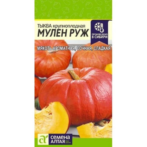 Среднепоздний (115-130 дней) высокоурожайный сорт. Растение мощное, длинноплетистое. Плоды плоскоокруглые, сегментированные, оранжево-красные, массой 4-9 кг, отдельные до 15-20 кг. Мякоть оранжевая, плотная, сочная, сладкая, отличного вкуса. Обладает высоким содержанием каротина.