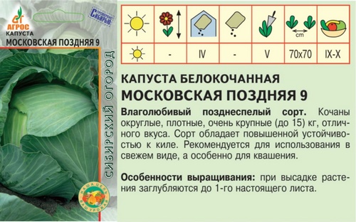 Влаголюбивый позднеспелый сорт. Кочаны округлые, плотные, очень крупные (до 15) кг, отличного вкуса. Сорт обладает повышенной устойчивостью к киле. Рекомендуется для использования в свежем виде, а особенно для квашения. Особенности выращивания: при высадке растения заглубляются до 1-го настоящего листа.