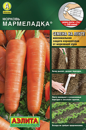 Посев: почву разрыхляют. Ленту помещают в хорошо увлажненные бороздки на подготовленной грядке, на глубину 1,5-2 см и засыпают грунтом, поливают. ДО ПОЯВЛЕНИЯ ВСХОДОВ ГРЯДКУ НАКРЫВАЮТ ПЛЕНКОЙ, ПОДДЕРЖИВАЯ ВЕРХНИЙ СЛОЙ ПОЧВЫ ВО ВЛАЖНОМ СОСТОЯНИИ (НЕ ДОПУСКАЯ ПЕРЕСЫХАНИЯ ЛЕНТЫ). Благодаря идеальному расположению семян на ленте (на расстоянии 3-3,5 см) всходы не требуют прореживания, и растения могут равномерно развиваться. Это сводит к минимуму повреждение корнеплодов морковной мухой, так как ее привлекает запах морковной ботвы, усиливающийся при прореживании. Дальнейший уход заключается в прополках, поливах и рыхлении почвы. Наслаждайтесь сладкой и здоровой морковью со своего огорода!