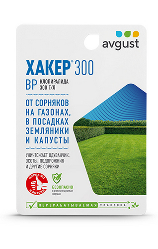 Уничтожает сорняки, не повреждая злаковые газонные травы, капусту и землянику.