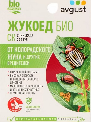 Представляем инсектицид Жукоед БИО от бренда Avgust – надежное решение для защиты картофеля от колорадского жука. Благодаря удобной форме жидкого средства и способу обработки путем опрыскивания, продукт обеспечивает эффективную защиту растений.