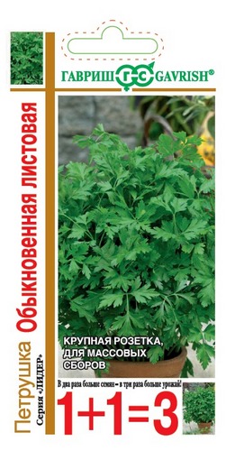Среднеспелый (80 дней от всходов до срезки листьев) сорт. Розетка сильно развита, число листьев от 40 до 100. Листья темно-зеленые, сильнорассеченные, очень ароматные, хорошо отрастают после срезки. Корни перезимовывают в почве и быстро дают свежую зелень ранней весной. Рекомендуется для употребления в свежем, сушеном и консервированном виде. Уборку листьев производят периодически, по мере необходимости. Урожайность 1,5–1,7 кг/м2.