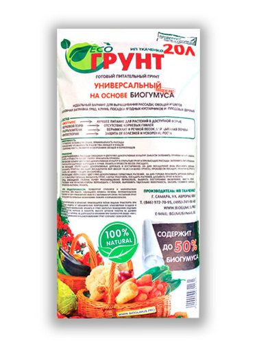 Плодородный состав универсального растительного Эко-грунта идеально подойдет для выращивания рассады овощей и цветов. Может использоваться как основная заправка для грядок, клумб, посадки ягодных кустарников и плодовых деревьев.