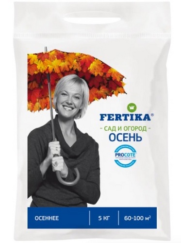 Удобрение «Фертика» осеннее — комплексная минеральная смесь в виде гранул из питательных веществ и микроэлементов. Основные компоненты — фосфор и калий — обеспечивают высокую зимостойкость растений. Удобрение рекомендуется применять при осенней перекопке или посадке молодых саженцев. Подходит для подкормки взрослых деревьев и кустарников перед зимовкой. Гранулы нужно равномерно разбросать по поверхности и заглубить перекопкой или рыхлением.