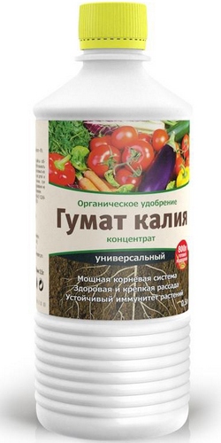В состав удобрения входит: гумат калия (К) не менее — 2,5%.