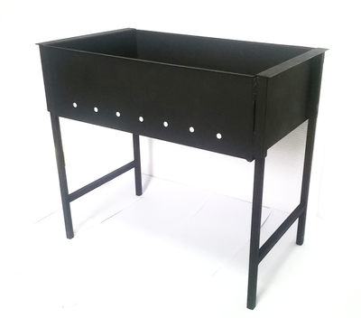 Мангал изготовлен из высокоуглеродистой холоднокатаной стали 2 мм с контурным усилением. Для удобства транспортировки предусмотрены съёмные ножки.