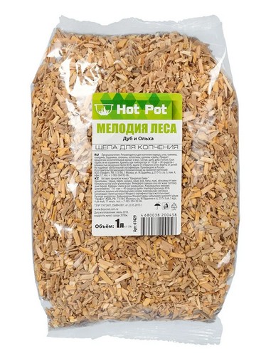 Описание: Смесь щепы ольхи и дуба hotpot изготавливается только из натуральной древесины. проста в использовании. однородный состав позволяет добиться равномерного копчения, улучшая вкус и аромат готового продукта. длительный срок хранения достигается за счет оптимальной влажности щепы.