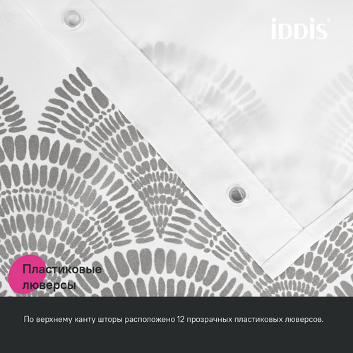 Легко ухаживать: шторку для ванной комнаты можно стирать в стиральной машине в деликатном режиме и гладить утюгом на минимальной температуре. Гарантия на текстильные аксессуары IDDIS® – 1 год.