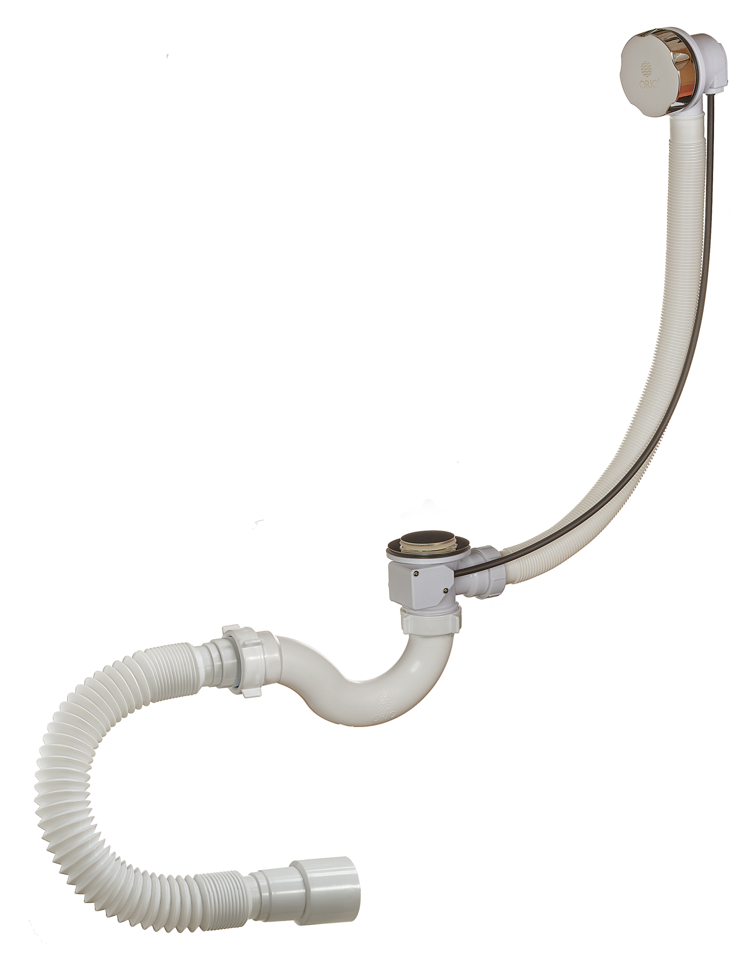 Сифон 1 1/2"х40, с полуавтоматическим сливом (нержавеющая сталь)-переливом (пластик-хром), для ванн и глубоких душевых поддонов. Конструкция сифона S-образная, прямоточная, самоочищающаяся. Отвод в канализацию гибкая труба 40-40/50.