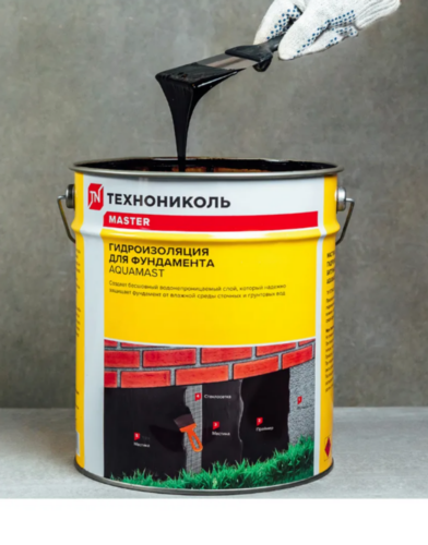 Мастика гидроизоляционная битумная для фундаментов AquaMast представляет собой полностью готовый к применению материал на основе нефтяного битума, содержащий технологические добавки, минеральные наполнители и растворитель. Работы производить при температуре от -10°С до +40°С. При температуре ниже +5°С мастику необходимо предварительно выдержать при комнатной температуре не менее суток. Не применять вблизи источников открытого огня. Работы проводить в хорошо проветриваемых помещениях. Избегать попадания на кожу и в глаза. Не применять внутри жилых помещений. При попадании на кожу мастику необходимо смыть растворителем. Расход мастики на 1 слой составляет 1 кг/м2. При нанесении на вертикальную поверхность – 0,7 кг/м2