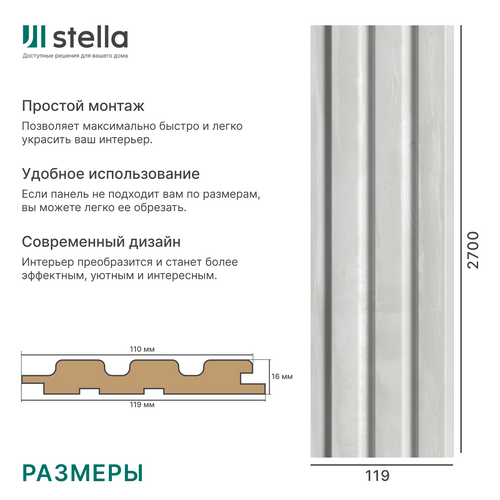 Панель Стеновая Реечная МДФ Stella Beats Standart Дуб Претто 2700x119x16 (упак. 4 шт.) — лаконичное решение для создания стильного интерьера.