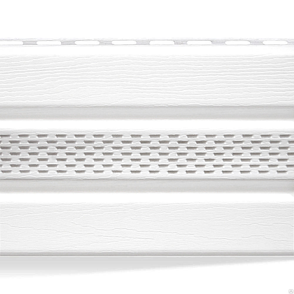 Софиты представляют из себя своего рода специальный подшивочный сайдинг, предназначенный для решения проблемы подшивки горизонтальных поверхностей, направленных вниз (карниза, фронтона, козырька и т. д.). Состав софита идентичен составу обычного сайдинга - ему так же не страшны перепады температур (-50 до +50 с), он не подвержен гниению и коррозии, гибок и податлив при обрезке. Перфорированный софит выполняет не только декоративные функции, но и обеспечивает вентиляцию подкровельного пространства.